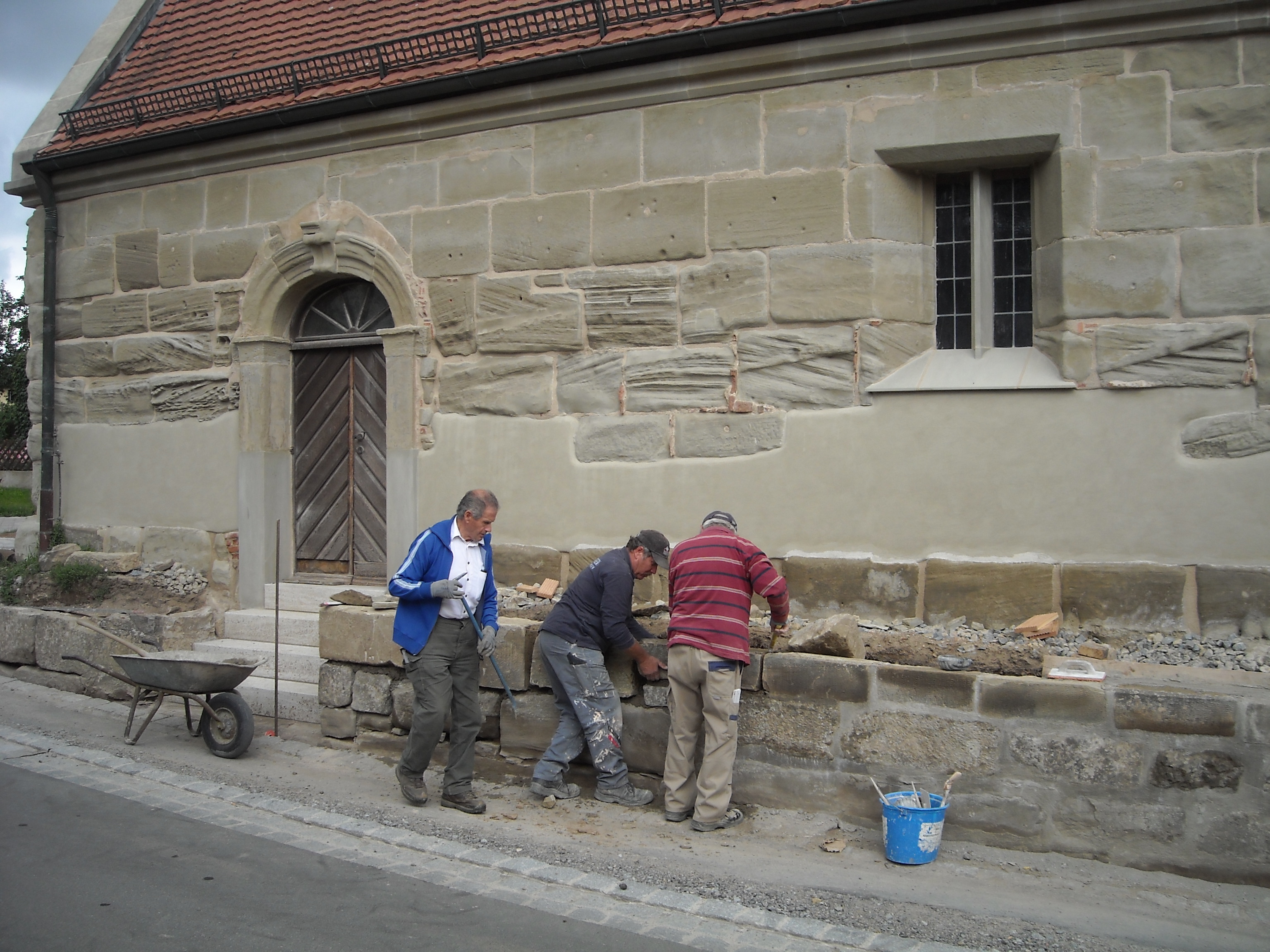 Steinmauer zwischen Kapelle und Straße befestigt und