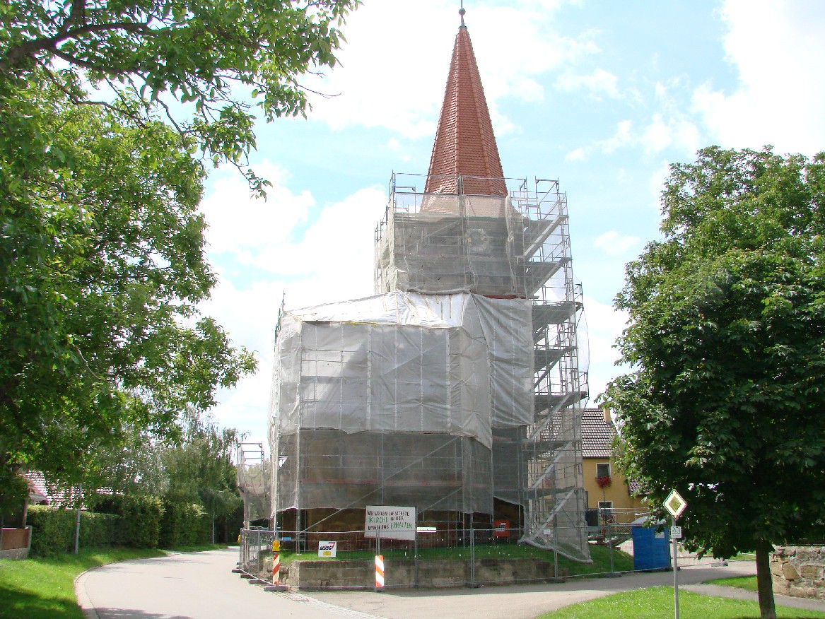 die Außenwände von Chor, Langhaus und Turmschaft instand